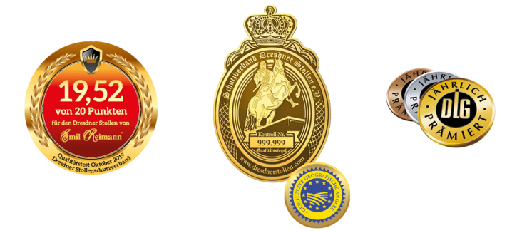 Der Schutzverband Dresdner Stollen e.V. überprüft jährlich die Qualität und verleiht anschließend die Siegelmarke “Goldener Stollen-Reiter”.
